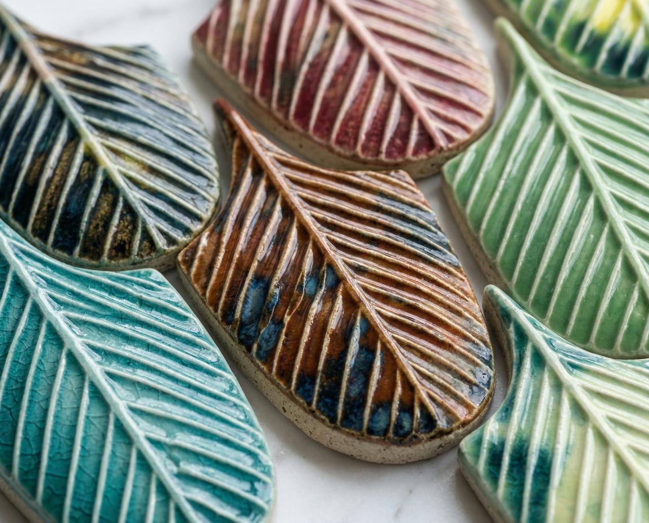 В основе палитры — глубокий бордо, насыщенный синий и сложные зеленые переливы, которые мягко перетекают друг в друга. Благодаря этому поверхность выглядит многослойной, словно настоящий лист, играющий светом. ✨