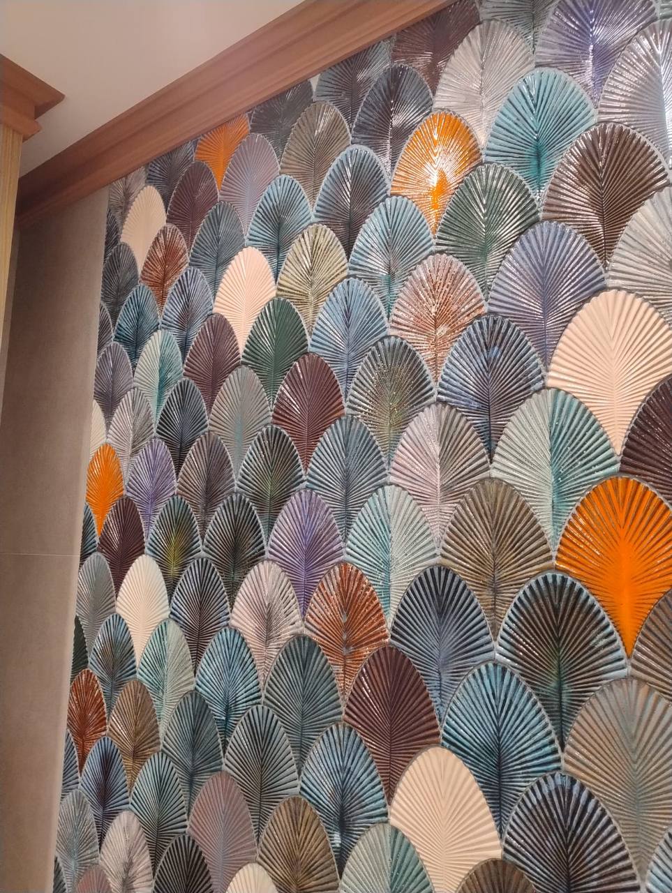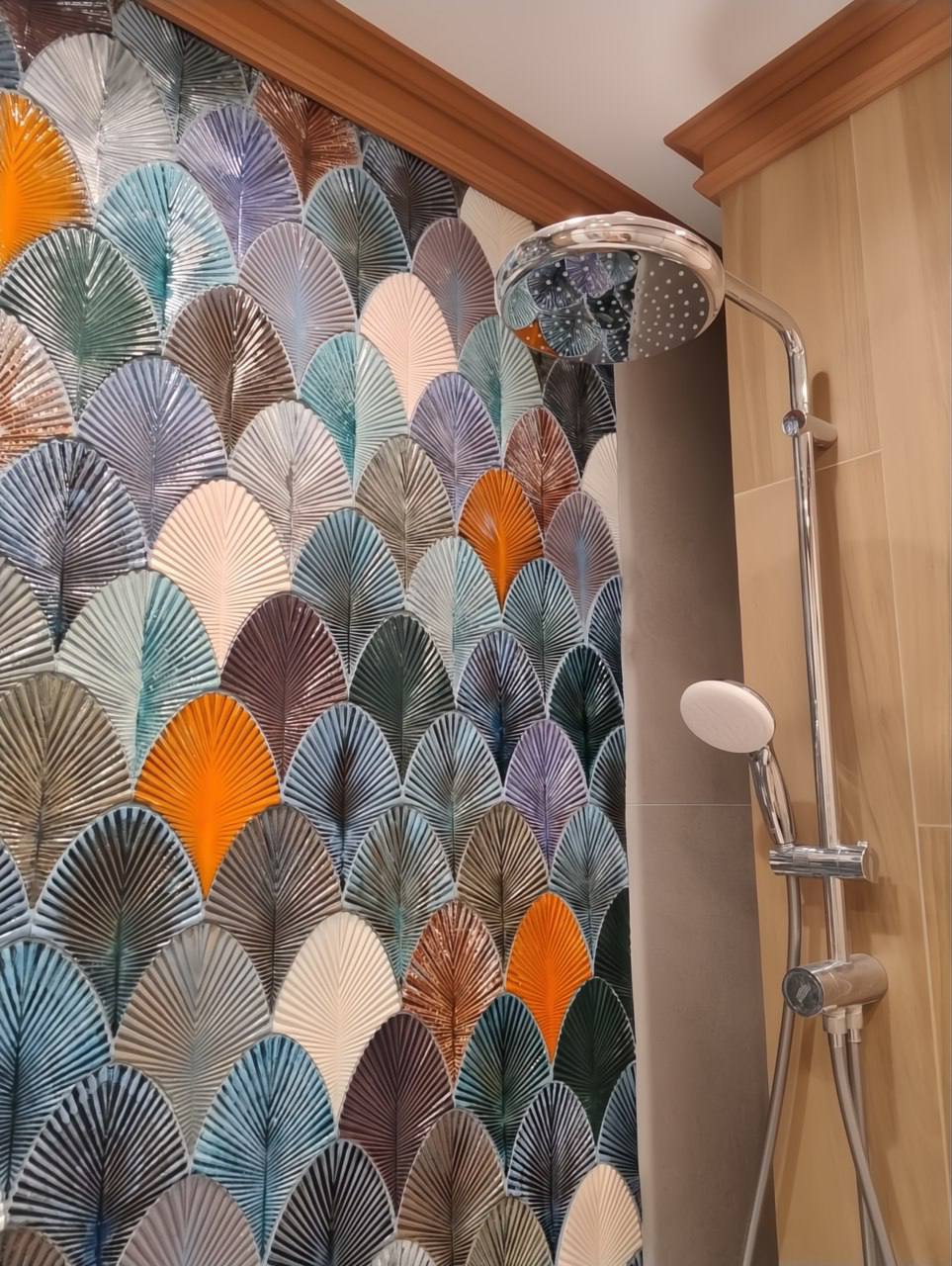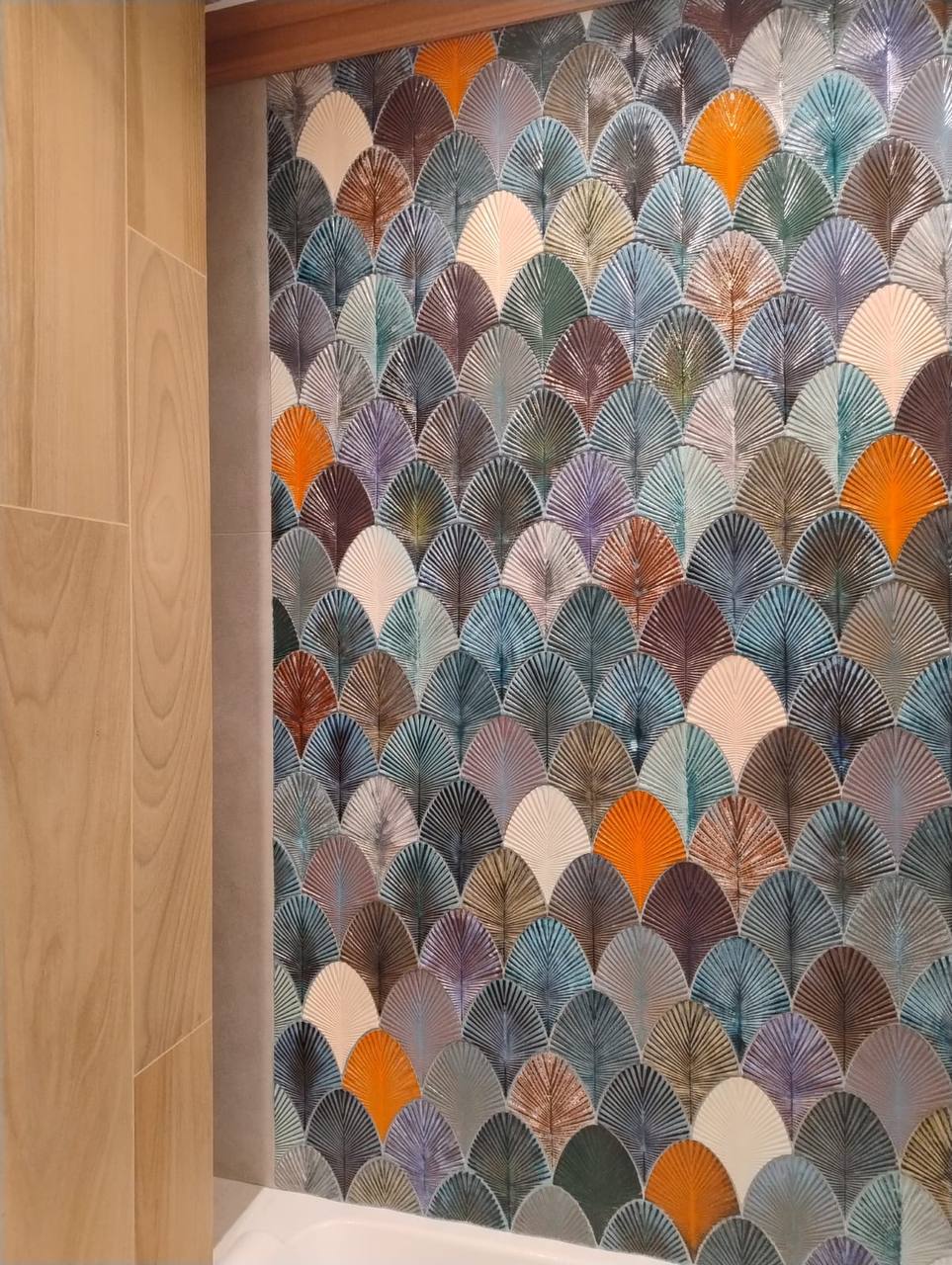 Михаил из Москвы выбрал плитку коллекции «Папоротник» для своего санузла — всего четыре квадратных метра, но какой эффект! Стена ожила, наполнив пространство мягким рельефом и сочными оттенками «Тропиков», которые он однажды увидел на нашем сайте и попросил повторить.